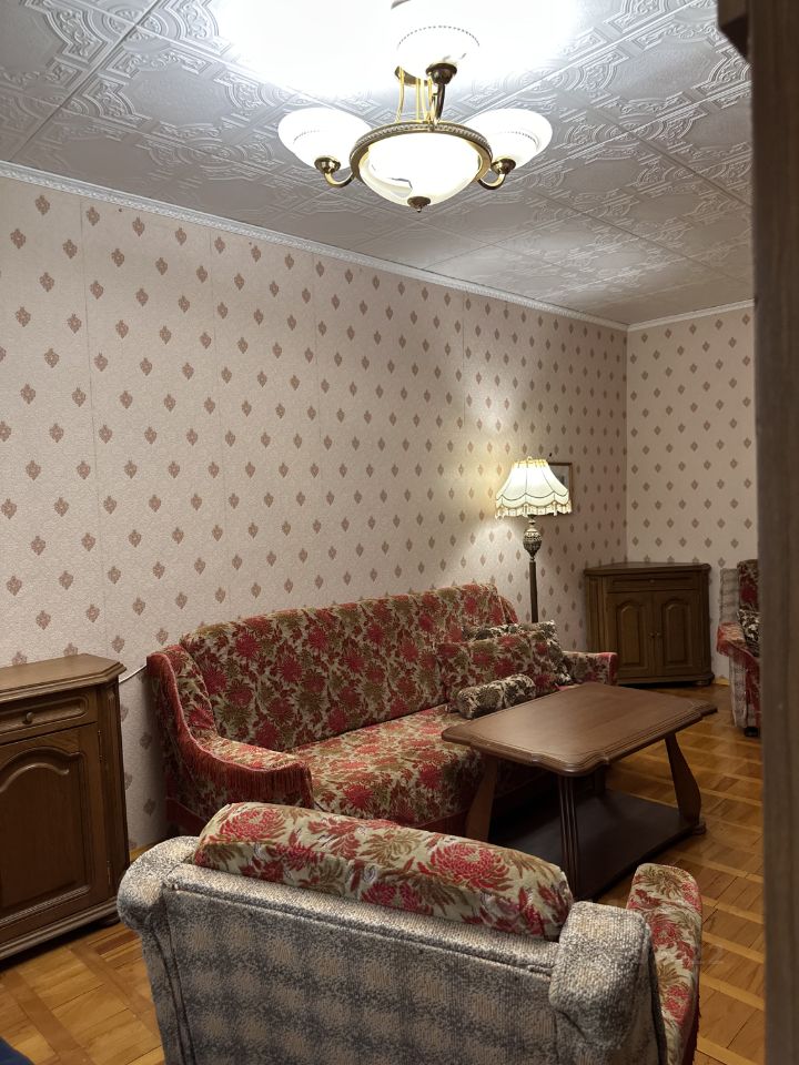 Квартира чистая .Ремонт не требует.В квартире остаётся стенка,в кухне стиральная машина,холодильник,стенка,телевизор.Окна выходят во двор.В шаговой доступности магазин,детсад,школа,поликлиника.