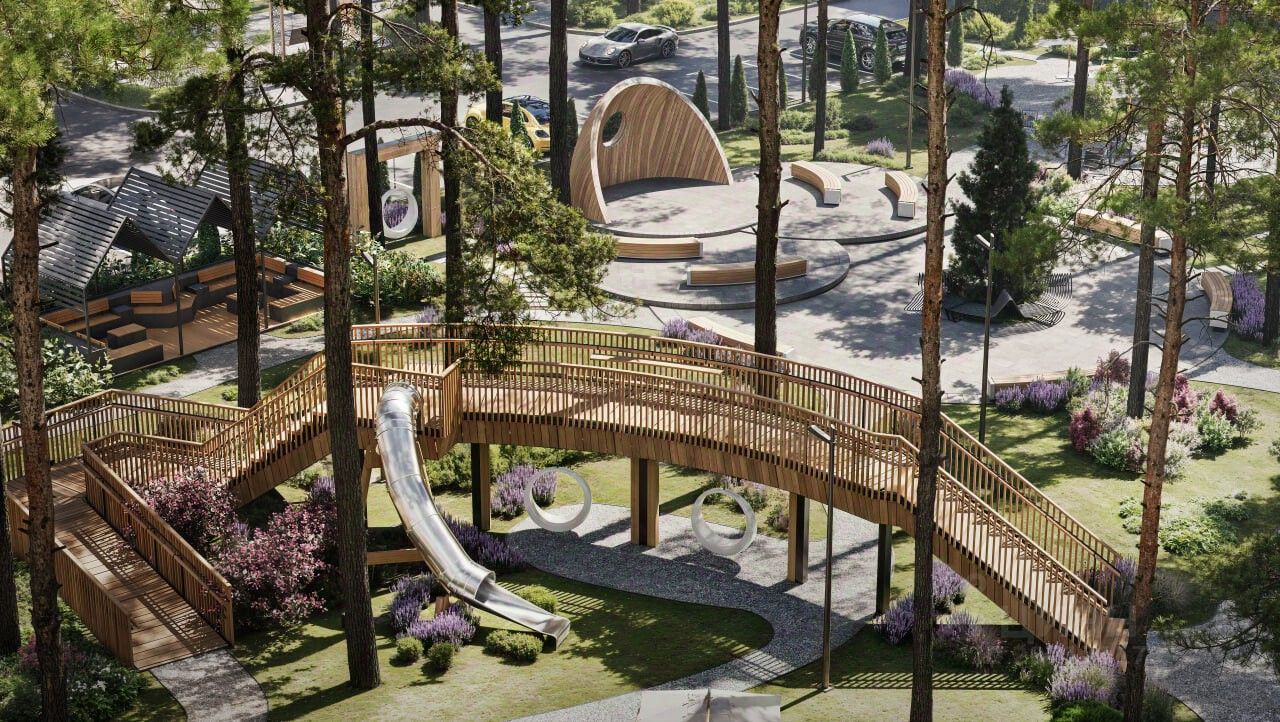 детские площадки с развивающими горками воркаут-зона для занятий спортом на открытом воздухе выделенная зона барбекю для любителей пикников парковочные места для жителей и гостей комплекса кладовые помещения в цокольном этаже трансфер до канатной дороги магазин спорттоваров, прокат инвентаря магазины, кафе, рестораны