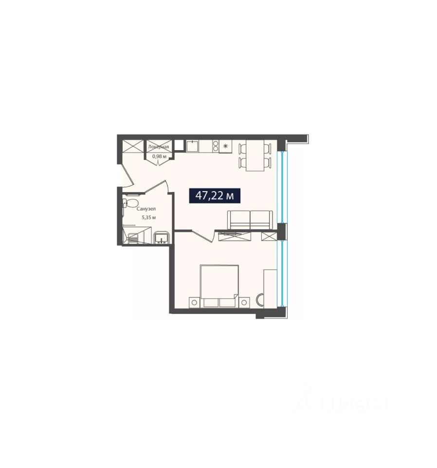 Общая площадь47,22 м2