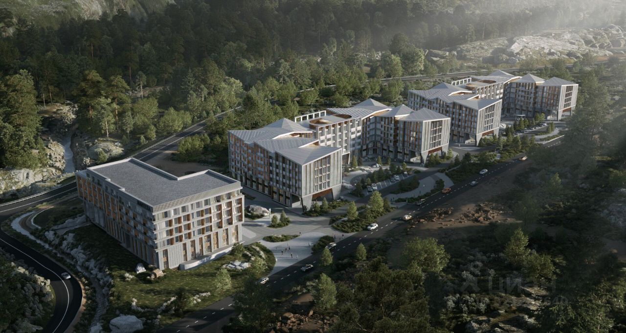 Отель будет располагаться в самом центре будущего курортного комплекса, на пересечении главных прогулочных улиц, расстояние до уже действующих подъемников всего 200 метров.