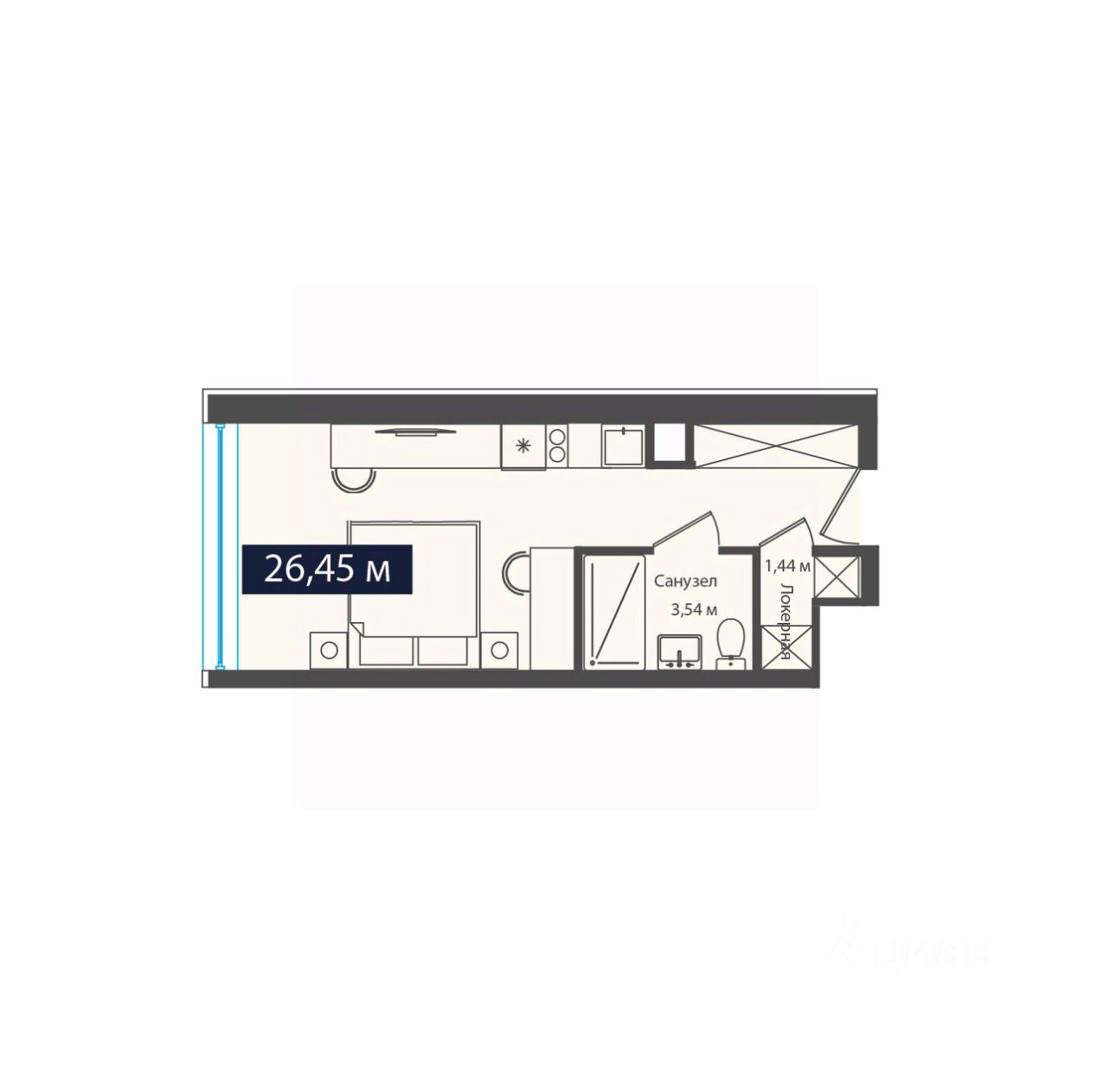Общая площадь26,45 м2