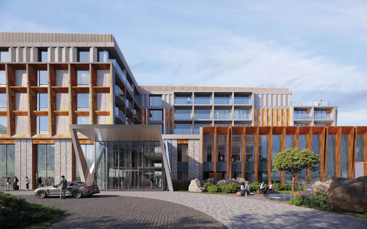 Отель будет располагаться в самом центре будущего курортного комплекса, на пересечении главных прогулочных улиц, расстояние до уже действующих подъемников всего 200 метров.
