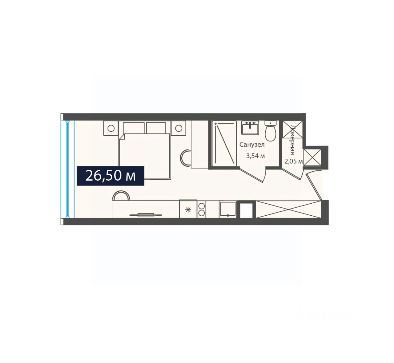 Общая площадь26,5 м2