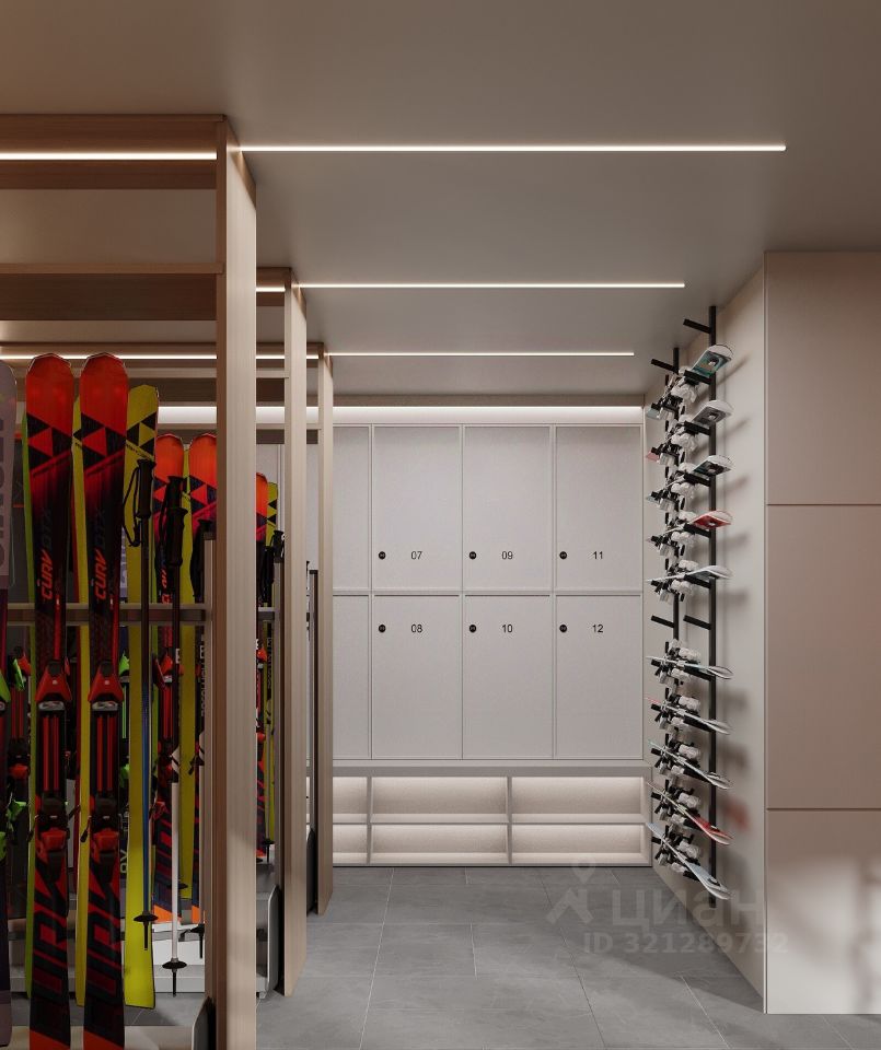 Дополнительные особенности: - инфраструктура для хранения и проката спортивного инвентаря, - система ''умный дом'' в квартирах позволяет управлять освещением, температурой и безопасностью на расстоянии.