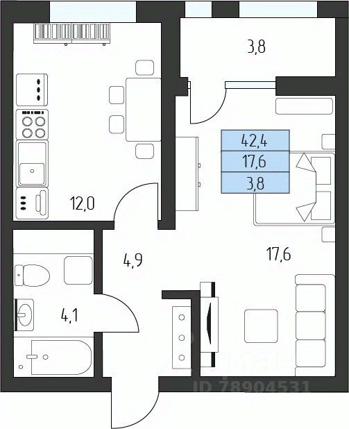 Жилая площадь17,6 м2
