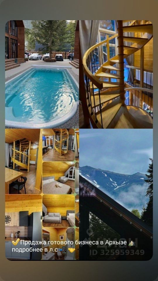 Продается отель в Архызе с шикарными видами и положительными отзывами , с наработанной клиентской базой . 4 Виллы ,в которых можно разместить 44 человека , помещение для персонала , два бассейна (детский и взрослый) , баня с купелью . Окупаемость 5 лет .Продажа закрытая ,подробности по телефону .